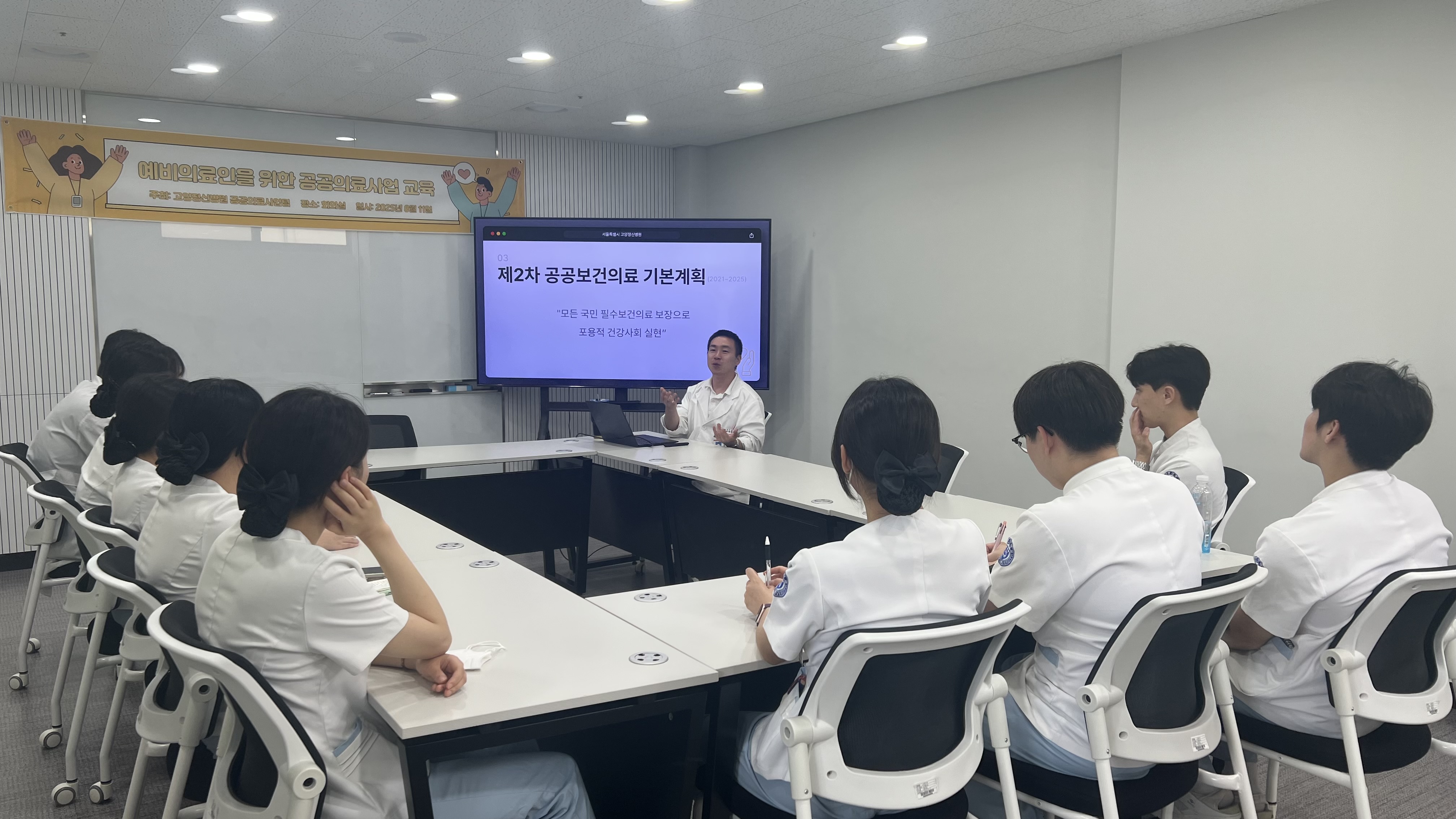공공의료사업팀에서는 예비의료인을 위한 공공보건의료사업교육을 실시하였습니다.실습선생님들에게 공공보건의료기본계획부터 우리병원에서 실시하고있는 공공의료사업까지설명하고 질의응답받는 뜻깊은 시간을 가졌습니다.