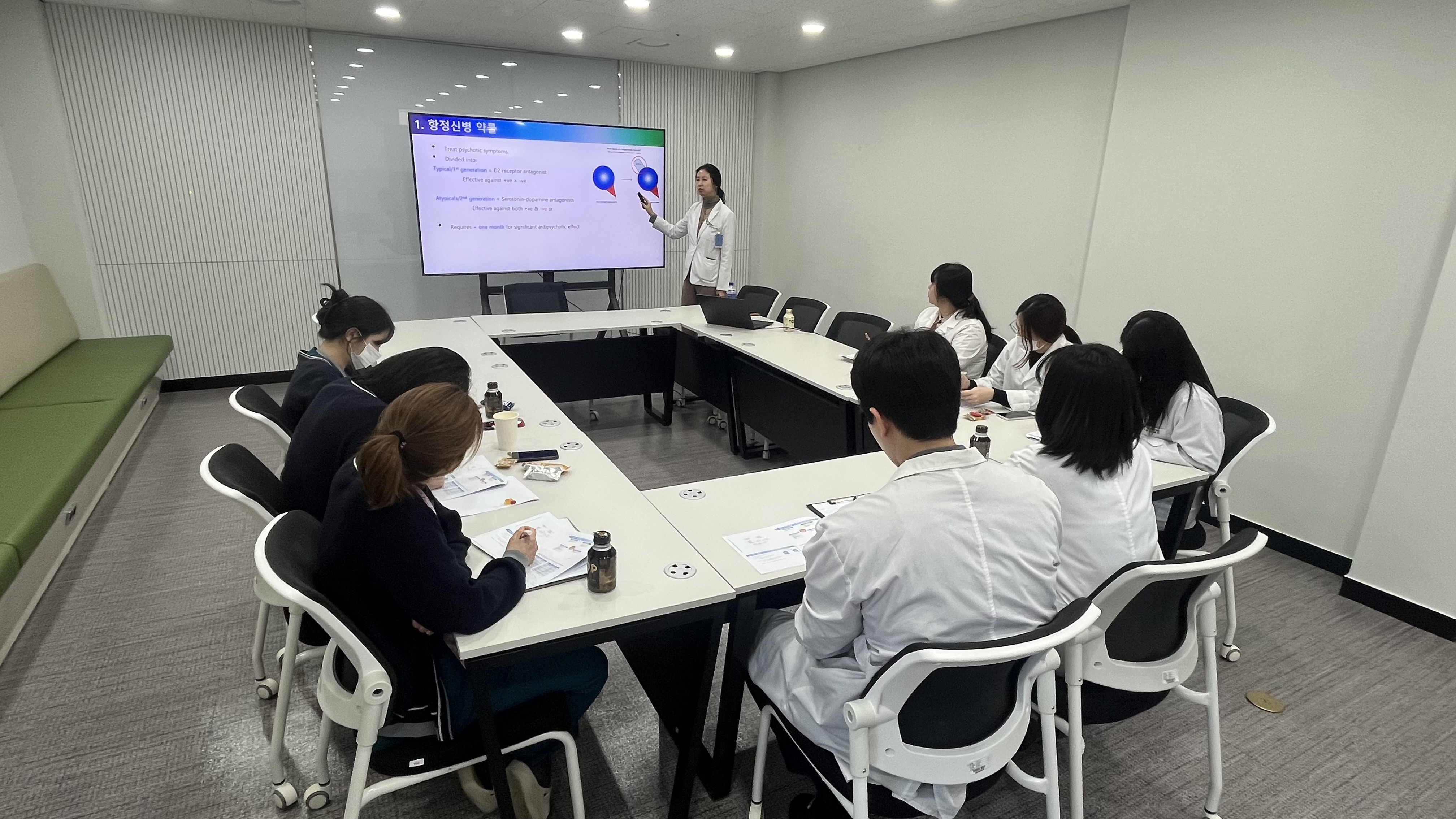 2025.12.17(수)직원을 대상으로 정신약리학 강의를 실시하였습니다.교육을 통해 궁금증을 해소하였으며 현장에서 사용되고 있는약물에대해 과장님께서 쉽게 설명해주셨습니다.